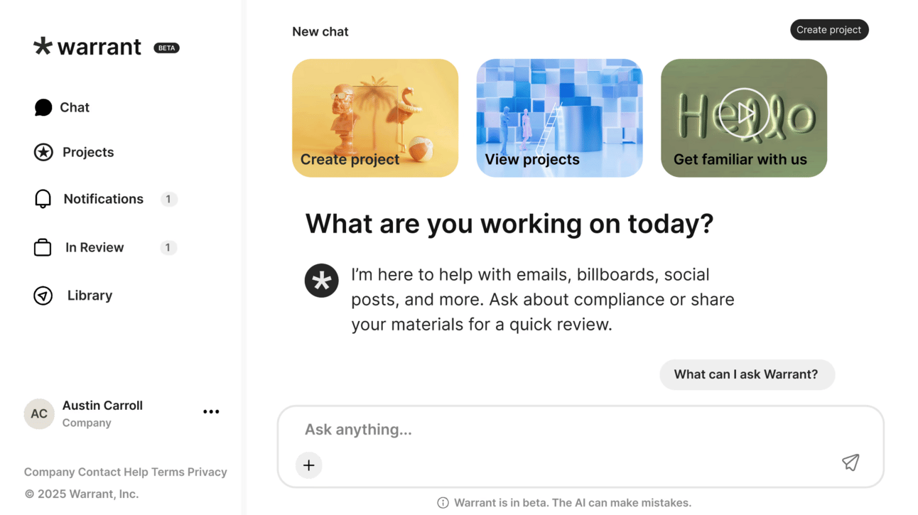 At Warrant, we are the first AI agent for marketing and communications compliance. Book a call with us here to learn how we can help your business.